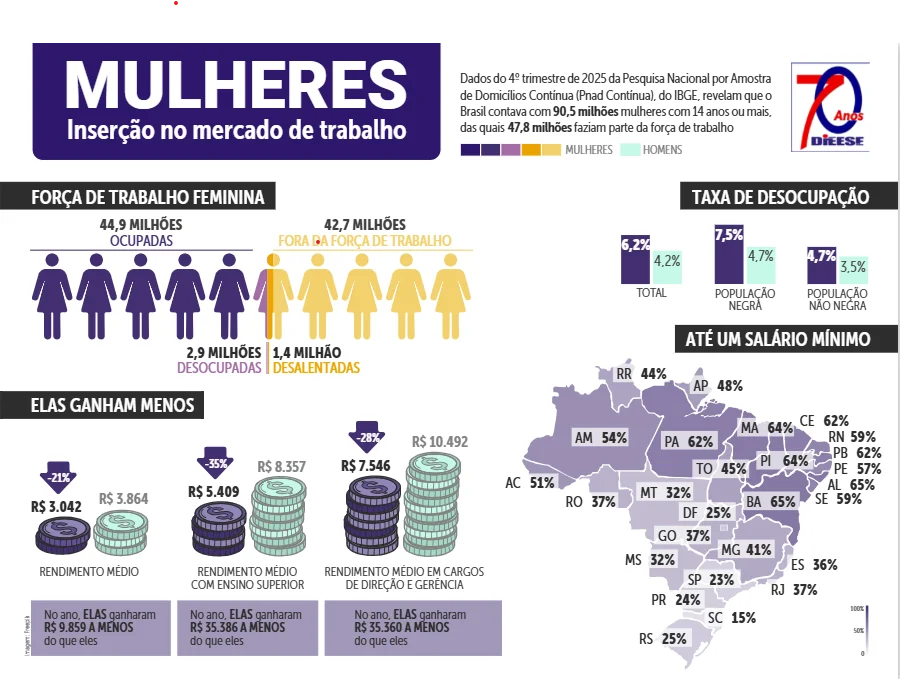 Mulheres ganham muito menos que os homens, segundo Dieese